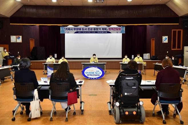 [거제=쿠키뉴스] 강종효 기자 = 경남 거제시(시장 변광용)는 20일 시청 블루시티홀에서 무장애 도시 조성의 정책 방향 모색을 위한 '무장애 도시 조성 정책간담회'를 개최했다.