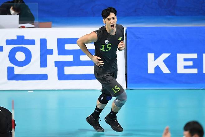 (서울=연합뉴스) 현대캐피탈 문성민이 20일 오후 서울 중구 장충체육관에서 열린 프로배구 우리카드와 현대캐피탈의 경기에서 기뻐하고 있다. 2021.1.20 [한국배구연맹 제공. 재배포 및 DB 금지]