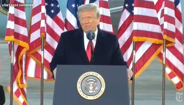트럼프는 지지자들을 향해 "당신들은 멋진 사람들이고 이 나라는 위대한 나라"라며 "나는 언제나 당신들을 위해 싸울 것"이라고 했다. 그러면서도 "다음 정부는 대단한 일을 할 수 있는 기초를 갖고 있기 때문에 성공할 것"이라고 했다. 그는 "우리는 어떤 형태로든 돌아올 것"이라는 말도 남겼다.