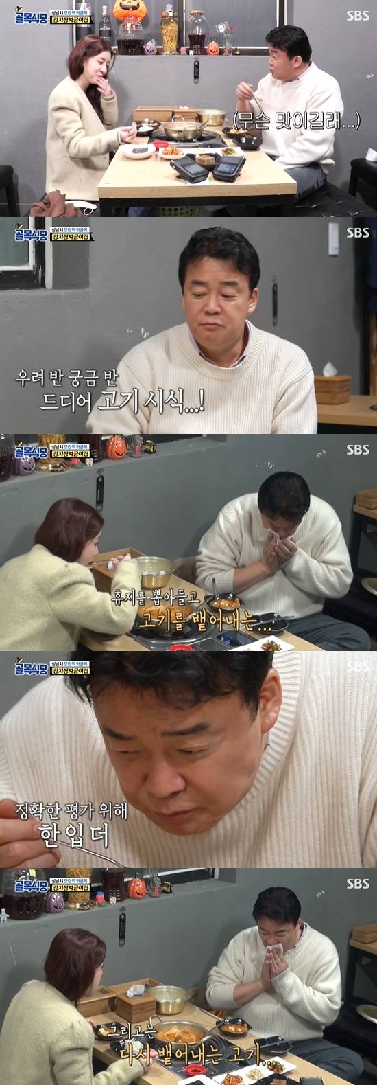 '골목식당' 백종원이 김치찜짜글이집의 고기를 뱉었다.