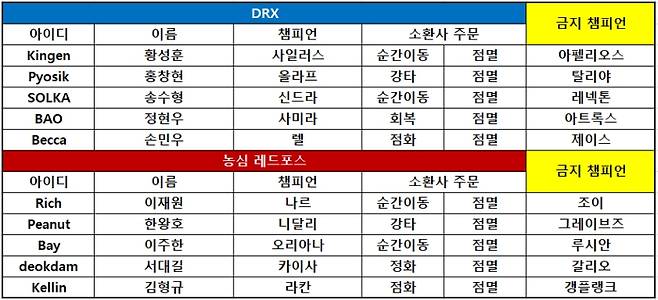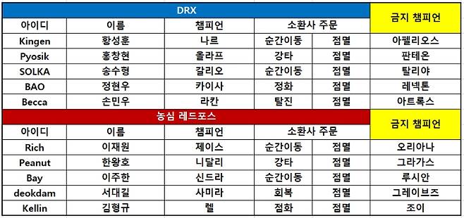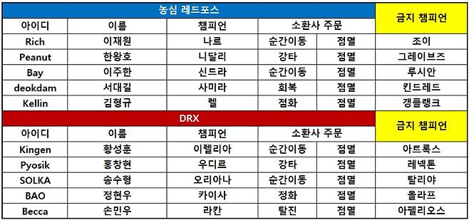 1세트 DRX < 소환사의협곡 > 승 농심