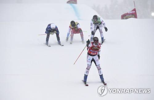 epa08951467 Bastien Midol of France wins the men's Ski Cross sprint final at the FIS Freestyle Skiing World Cup event in Idre, Sweden, 20 January 2021. EPA/Pontus Lundahl/TT SWEDEN OUT