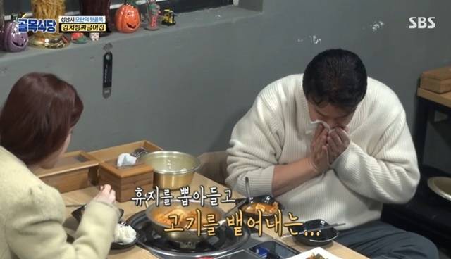 백종원이 김치찜짜글이집에서 고기를 두 번 뱉었다.