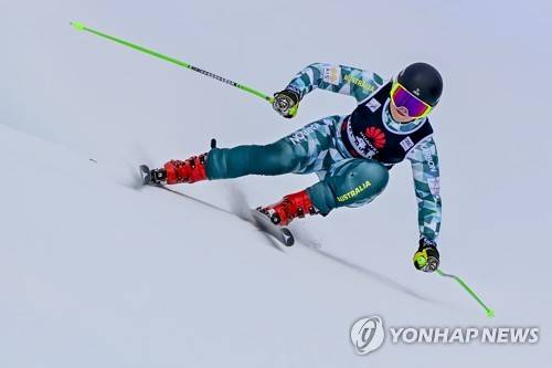 epa08951542 Greta Small of Australia in action during a training session for the women's Downhill race at the FIS Alpine Skiing World Cup in Crans-Montana, Switzerland, 20 January 2021. EPA/JEAN-CHRISTOPHE BOTT