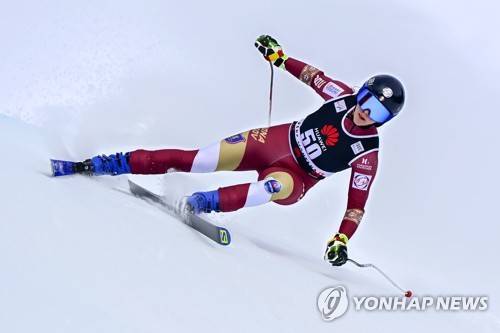 epa08951577 Ania Monica Caill of Romania in action during a training session for the women's Downhill race at the FIS Alpine Skiing World Cup in Crans-Montana, Switzerland, 20 January 2021. EPA/JEAN-CHRISTOPHE BOTT