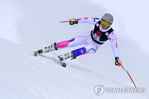 epa08951579 Nevena Ignjatovic of Serbia in action during a training session for the women's Downhill race at the FIS Alpine Skiing World Cup in Crans-Montana, Switzerland, 20 January 2021. EPA/JEAN-CHRISTOPHE BOTT