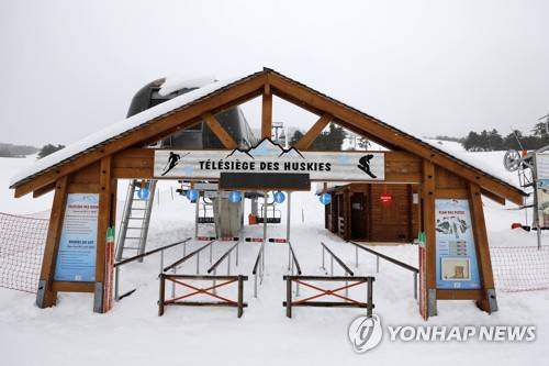 epa08951597 A closed chairlift following the French government's decision not to allow the reopening of lifts in ski resorts in Greolieres-les-Neiges, France, 20 January 2021. EPA/SEBASTIEN NOGIER