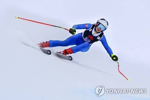 epa08951604 Elvedina Muzaferija of Bosnia and Herzegovina in action during a training session for the women's Downhill race at the FIS Alpine Skiing World Cup in Crans-Montana, Switzerland, 20 January 2021. EPA/JEAN-CHRISTOPHE BOTT