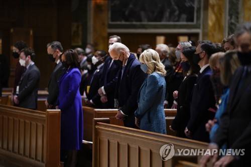 President-elect Joe Biden and his wife Jill Biden attend Mass at the Cathedral of St. Matthew the Apostle during Inauguration Day ceremonies Wednesday, Jan. 20, 2021, in Washington. (AP Photo/Evan Vucci)