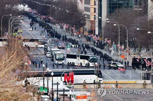 epa08951666 Members of law enforcement line the streets ahead of the inauguration of Joe Biden as US President in Washington, DC, USA, 20 January 2021. Biden won the 03 November 2020 election to become the 46th President of the United States of America. EPA/TASOS KATOPODIS / POOL