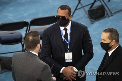 Former Major League Baseball player Alex Rodriguez, center, arrives to the West Front of the U.S. Capitol for the Inauguration of Joe Biden in Washington on Wednesday, Jan. 20, 2021. Rodriguez is engaged to Jennifer Lopez who is set to perform during the Inauguration ceremony. (Caroline Brehman/Pool Photo via AP) POOL PHOTO