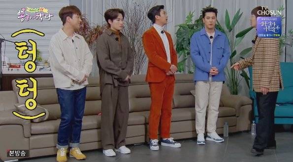 이날 임영웅, 이찬원, 장민호, 김희재는 배우들을 맞이하기 위해 한껏 멋을 부린 채 등장했다.
