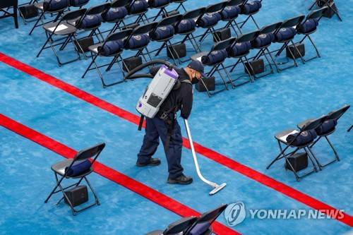 epa08951712 A man vacuums as preparations are made ahead of the inauguration of Joe Biden as US President in Washington, DC, USA, 20 January 2021. Biden won the 03 November 2020 election to become the 46th President of the United States of America. EPA/TASOS KATOPODIS / POOL
