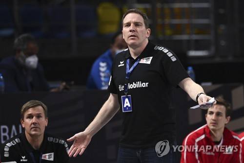 epa08951737 Switzerland's head coach Michael Suter reacts during the main round match between Switzerland and Iceland at the 27th Men's Handball World Championship in Cairo, Egypt, 20 January 2021. EPA/Anne-Christine Poujoulat / POOL