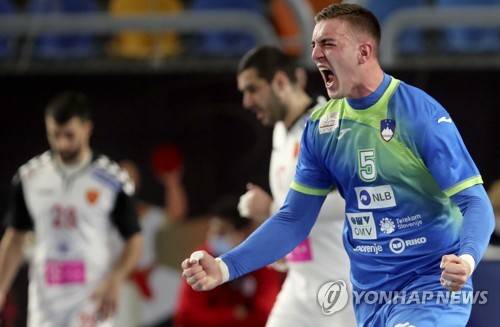 epa08951739 Nik Henigman of Slovenia reacts during the match between North Macedonia and Slovenia at the 27th Men's Handball World Championship in Cairo, Egypt, 20 January 2021. EPA/Mohamed Abd El Ghany / POOL