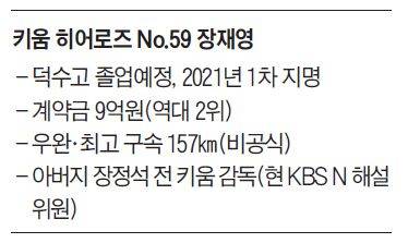 그러나 올해 키움은 1차 지명 신인 장재영(19)에게 기대를 건다. 올 시즌 KBO 신인 최대어로 꼽히는 우완 정통파 투수다. 고교 때부터 메이저리그 스카우트가 보는 앞에서 시속 150㎞ 넘는 공을 던졌다. 비공식 최고 구속은 시속 157㎞. 강속구에 뛰어난 타격 능력까지 갖춰 ‘한국의 오타니 쇼헤이’라고도 불렸다.