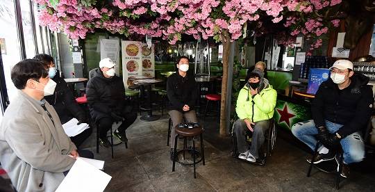 서울 이태원에서 주점을 운영하는 그룹 클론 출신 가수 강원래가 국민의당 안철수 대표를 만나 코로나19 시국의 소상공인 고충에 대해 털어놨다.