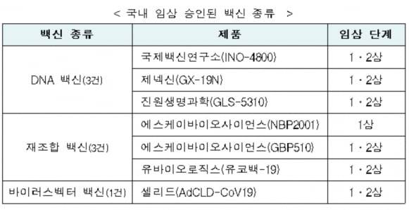 이에 따라 국내에서 임상 중인 코로나19 백신은 7개로 늘었다.