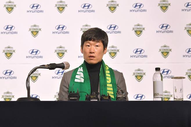 (서울=연합뉴스) 전북 현대의 '조언자'로 나서며 국내 프로축구 무대에 입성한 '영원한 캡틴' 박지성이 21일 오전 경기 고양 현대모터스튜디오에서 열린 전북 어드바이저 취임 기자회견에 참석해 질문에 답하고 있다. 2021.1.21 [전북 현대 제공. 재판매 및 DB 금지]