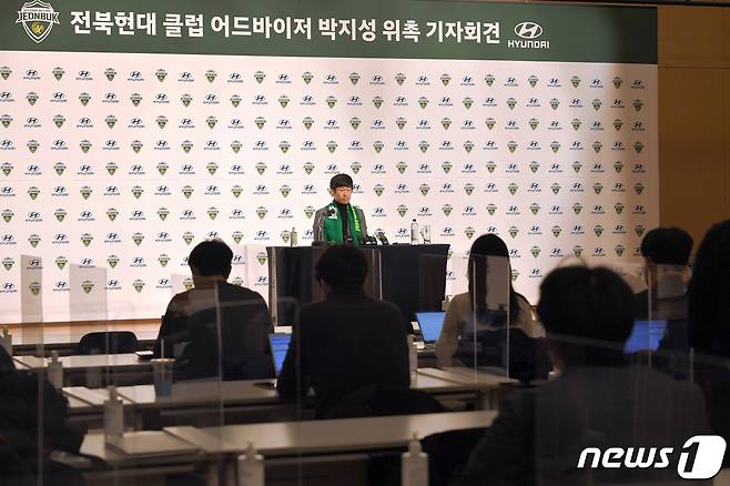 (서울=뉴스1) = 박지성이 21일 오전 경기도 고양 현대모터스튜디오에서 '전북현대 클럽 어드바이저 위촉 기자회견'을 하고 있다. (전북 현대 제공) 2021.1.21/뉴스1