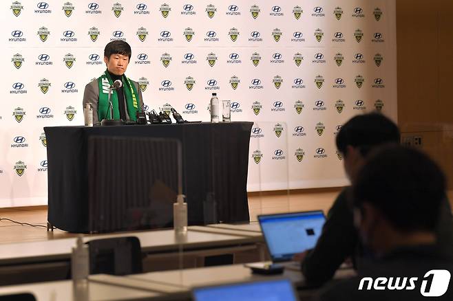 (서울=뉴스1) = 박지성이 21일 오전 경기도 고양 현대모터스튜디오에서 '전북현대 클럽 어드바이저 위촉 기자회견'을 하고 있다. (전북 현대 제공) 2021.1.21/뉴스1