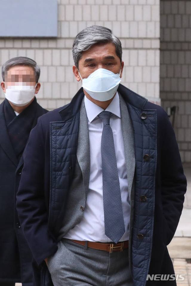 [서울=뉴시스]고승민 기자 = 정종선 전 고교축구연맹 회장이 횡령 및 성폭행 의혹 관련 선고 공판을 받기 위해 21일 서울중앙지방법원으로 향하고 있다. 2021.01.21. kkssmm99@newsis.com