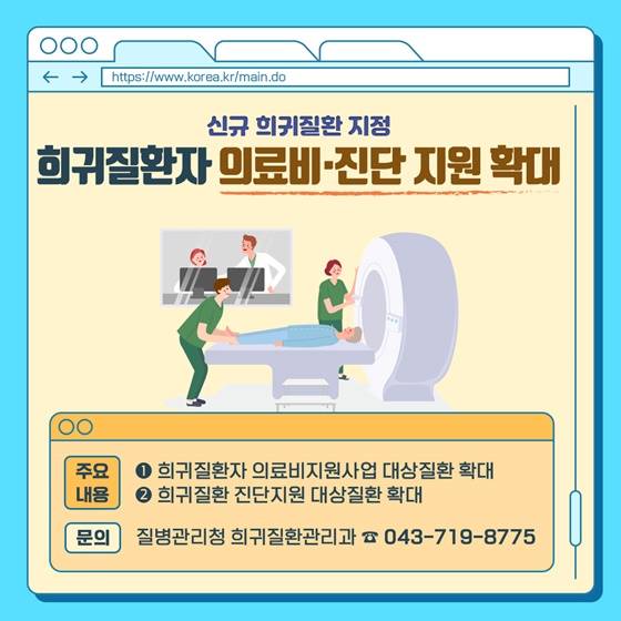 ※주요 내용 : ①희귀질환자 의료비지원사업 대상질환 확대 ② 희귀질환 진단지원 대상질환 확대