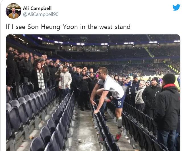 한 팬은 “손흥민의 형은 정말 무자비하다”라는 글과 함께 우는 얼굴의 이모지를 붙였다. 다른 팬은 에릭 다이어가 관중석에 난입한 사진을 올리면서 “내가 서쪽 관중석에서 손흥뮨을 본다면”이라고 재치 있는 반응을 했다.