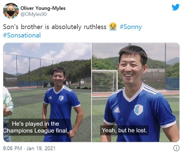 [스포탈코리아] 김성진 기자= 손흥민 형제는 역시 ‘현실 형제’다웠다. 거침없는 ‘팩폭’을 하며 형제다운 면모를 보였다. 이러한 모습에 팬들은 “무자비하다”라는 반응을 하며 즐겼다.