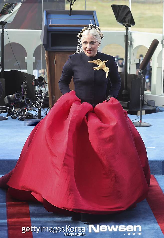 레이디 가가가 1월 20일(현지시간) 미국 워싱턴 DC 미국 국회의사당에서 열린 조 바이든 미국 대통령의 취임식에 참석했다.