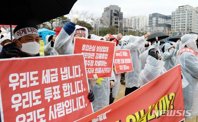 '우리도 세금 냅니다!' 구호 외치는 유흥업소 관계자들'
