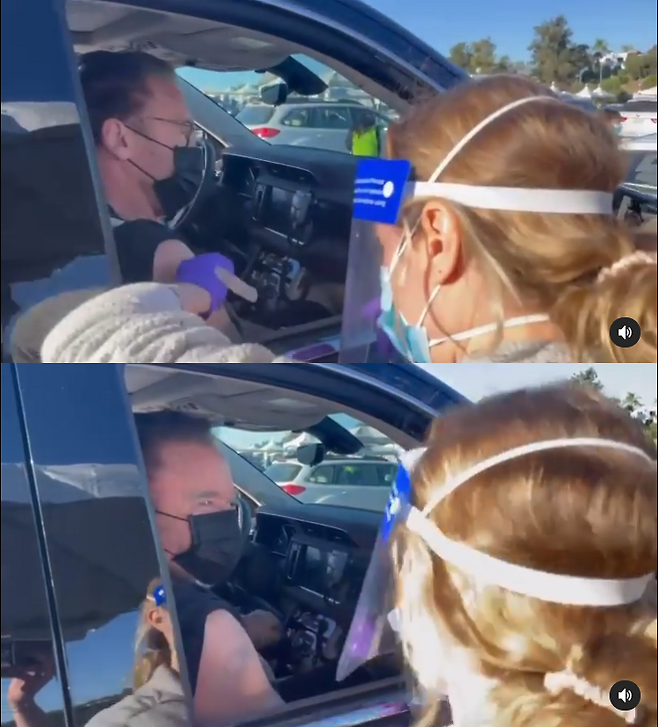 공개된 영상 속에서 그는 자동차의 조수석에 앉아 코로나19 백신을 맞고 있다.