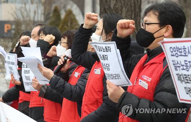 구호 외치는 요양보호사들