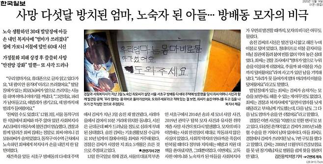 △한국일보 사회부 김진웅·오지혜·신지후·이동현·윤태석 기자 <방배동 모자의 비극>
