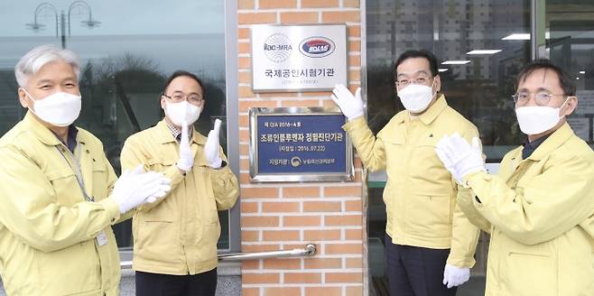 전북동물위생시험소는 21일 전국 지자체 최초 국제공인시험기관 인정을 기념하는 현판 제막식을 가졌다.