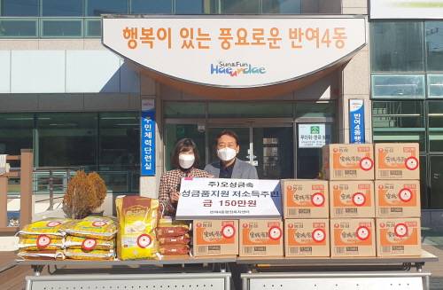 ㈜오성금속(회장 김형길)은 지난 18일 '희망 2021 나눔 캠페인'을 통해 기부금 100만 원과 21일에는 저소득 주민들을 위해 50만 원 상당의 라면과 쌀을 해운대구 반여4동 행정복지센터(동장 이혜정)에 기탁했다.