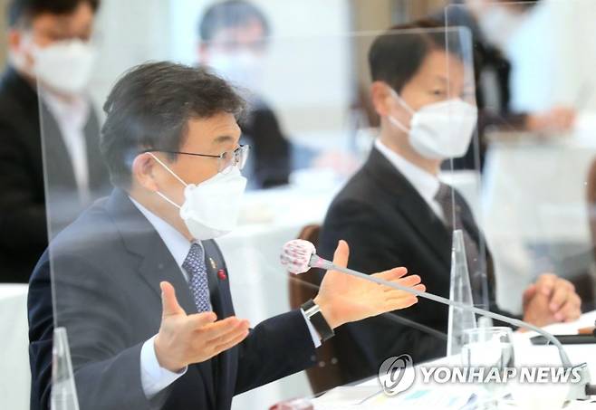 (서울=연합뉴스) 권덕철 보건복지부 장관이 21일 서울 중구 프레스센터에서 개최된 '제1차 첨단재생의료 및 첨단 바이오의약품 정책심의위원회'에서 발언하고 있다. 2021.1.21