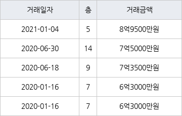 [이 기사는 조선비즈와 아티웰스가 공동으로 개발해 서비스하는 로봇 기사입니다.]국토교통부 실거래가 공개시스템에 따르면 지난 2021년 1월 4일 서울특별시 노원구 상계동 상계주공4단지 5층 전용면적 84㎡형이 8억9500만원에 거래됐다.