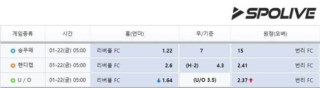 전문가들은 리버풀의 승리를 예측했다. 국내 스포츠 승부예측 게임 업체 '스포라이브'는 리버풀에 1.22배, 번리에 15배의 배당률을 책정했다. 배당률이 낮다는 것은 발생할 가능성이 크다는 것으로, 리버풀에 배당된 1.22배는 리버풀의 승리 확률이 82%라는 것을 뜻한다. 양 팀 배당률을 봤을 때 리버풀이 손쉽게 승리를 가져갈 것으로 보인다. 또한, 양 팀 경기는 총득점 합이 '3.5골 이하'로 터질 가능성이 높다. 스포라이브는 양 팀 경기의 총 득점 합이 3.5골을 넘지 않을 것이라는 배당률에 1.64배를 책정했으며, 3.5골 이상에는 2.37배라는 상대적으로 높은 배당률을 부여했다. 즉, 리버풀의 승리가 점쳐지는 동시에 '3.5골 이하'의 경기가 펼쳐질 가능성이 높기 때문에, 리버풀의 3-0 승리가 예상된다.
