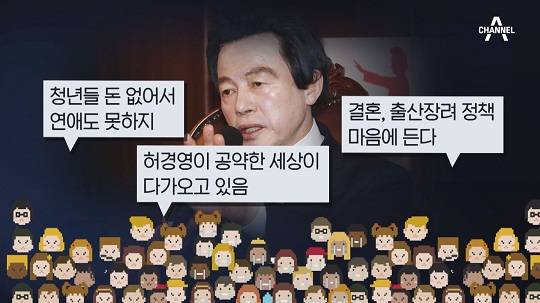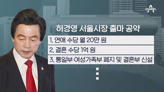 결혼을 장려하겠다며 미혼자에게는 연애 수당을 월 20만 원, 결혼하면 1억 원을 약속했고, 통일부와 여성부를 없애고 결혼부를 신설해 국가가 결혼을 지원하겠다고 했습니다.