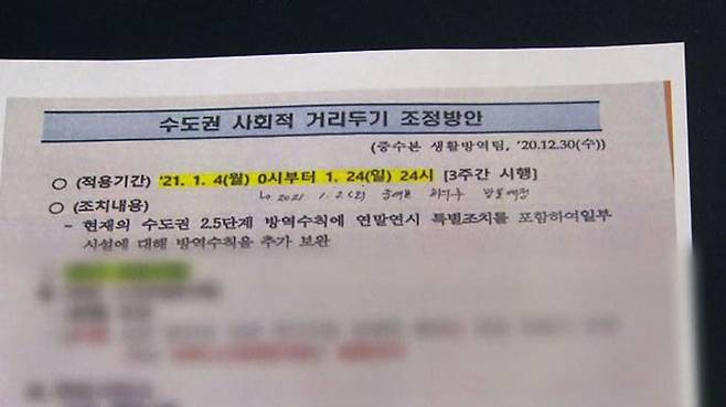 새해 첫날 온라인에는 '수도권 사회적 거리두기 조정방안'이라는 문건이 떠돌았습니다.