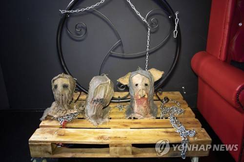 epa08955503 Masks are seen on a table in the main dungeon room at the Fetish Haven dungeon in Johannesburg, South Africa, 07 January 2021 (Issued on 21 January 2021). The dungeon has various theme rooms catering for fetishes ranging from crossdressing/feminisation, medical, massage, rope play, bondage, flogging etc. The Covid-19 Corona virus has had a huge impact on the BDMS sub culture in the city with the first months of lockdown staring in March 2020 stopping all events at the dungeon and bringing it to a close. Recently however relaxation in lockdown restrictions have seen a increase in events and play sessions a the dungeon as people feel the need to deal with the stress and anxiety of the lockdown by visiting the dungeon and playing out their fantasies. Full Covid-19 safety measures are enforced at all times. EPA/KIM LUDBROOK ATTENTION: This Image is part of a PHOTO SET