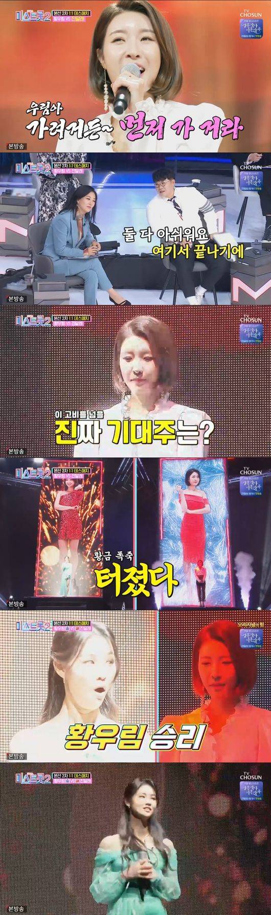 21일 방송된 TV조선 '미스트롯 시즌2'에서 진 황우림이 신비로운 무대로 승리했다.