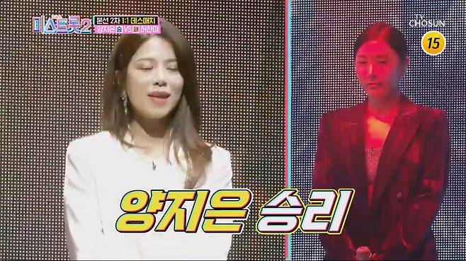 '암반수 보이스'의 양지은과 '시청각 만족' 허찬미의 대결은 7대4로 양지은의 승리로 돌아갔다.