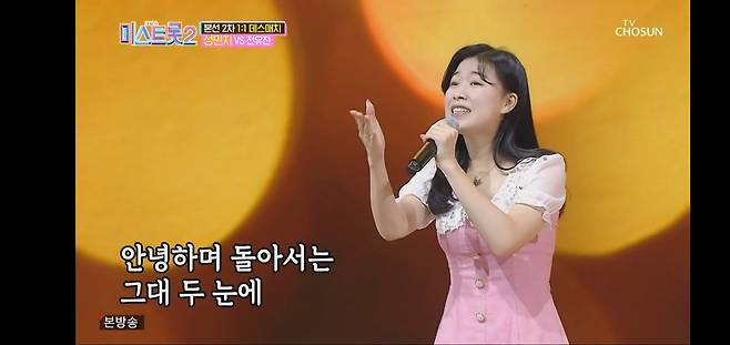 21일 방송된 TV조선 ‘미스트롯2′ 무대 선공에 나선 성민지는 “곡에 이어 승리도 뺏겠다”고 선언했다. 주현미 노래로 무대를 연 성민지는 고등학생으로는 보이지 않는 프로급 무대매너로 깔끔하게 이어갔다. 꺾기에 적당한 비음이 조화롭게 이어졌고 환한 표정과 낭랑한 성량도 무대를 들썩이기 충분했다. 청량한 목소리가 특기인 성민지 특유의 매력이 발산된 무대였다.