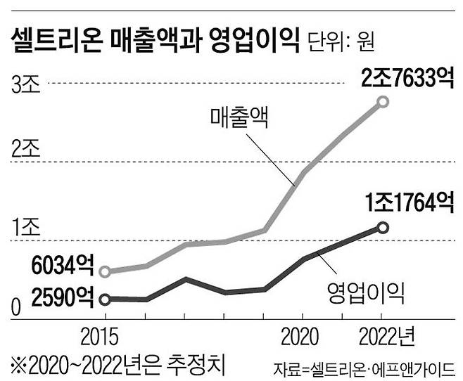 셀트리온은 지난해 코로나 팬데믹(대유행)에도 불구하고 역대 최대 매출액과 영업이익을 기록했다. 금융정보업체 에프앤가이드에 따르면 매출액과 영업이익은 각각 1조8681억원과 7647억원으로 추정된다. 기 대표는 “순위를 염두에 두고 달려온 건 아니지만, 코로나에도 큰 영향을 받지 않았던 점이 좋은 실적으로 이어진 것 같다”고 했다. 그는 이어 “전 세계적으로 고령화와 재정 부담 걱정으로 인해 바이오 시밀러가 수혜를 받을 수 있을 것”이라며 “올해도 작년 성장률만큼의 실적을 이끌어 나갈 것”이라고 했다.