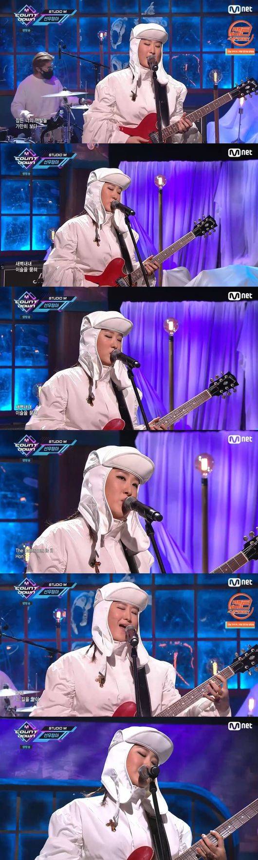 [OSEN=김수형 기자] '엠카운트다운'에서 선우정아가 특유의 감성어린 보이스로 팬들의 마음을 적신 가운데, 우주복 혹은 방한복(?)같은 스타일의 비주얼로 등장해 팬들의 눈길을 사로 잡았다.