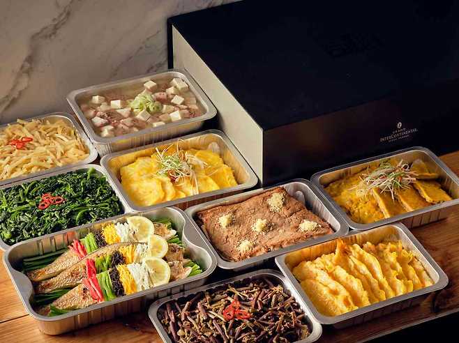 The premium ceremonial table to-go set, featuring beef radish broth, jeok (meat and fish), thin beef slices and sea bream fillets coated in batter then pan grilled will be delivered directly to customers by hotel staff for the price of 790,000 won. Orders must be placed at least 48 hours in advance.