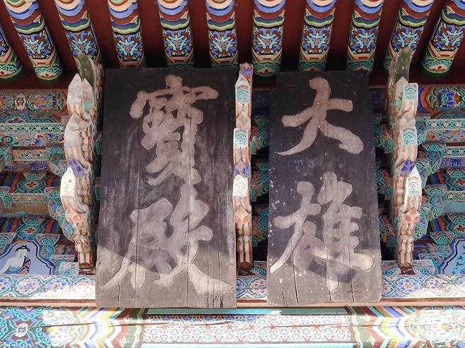 | ▲ 대웅보전 현판 동국진체의 대표작으로, 무시로 떨리는 필획에 울분이 느껴진다. |