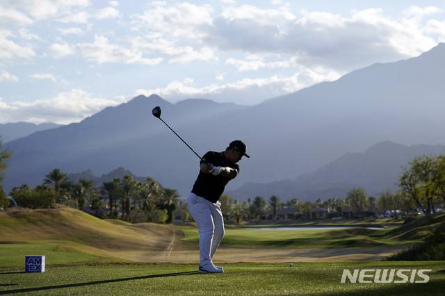 [라킨타=AP/뉴시스]김주형이 21일(현지시간) 미 캘리포니아주 라 킨타의 PGA웨스트 니클라우스 토너먼트 코스에서 열린 미프로골프(PGA) 투어 아메리칸 익스프레스 첫날 9번 홀에서 티샷하고 있다. 김주형은 3언더파 69타로 공동 39위 그룹에 이름을 올렸다. 2021.01.22.